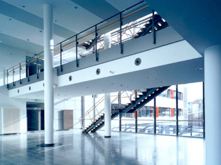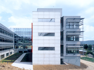 Die Umsetzung der direkten Zuordnung der Labore der wissenschaftlichen Mitarbeiter zu den Büros spiegelt sich in der Ausgestaltung der Fassade wieder – die glatten, nach Norden orientierten Außenflächen repräsentieren die Labore, während die Büros mit ihrer zweischichtigen Fassade nach Süden ausgerichtet sind. Sonderlabore für empfindliche Messungen im Untergeschoss wurden von der Konstruktion abgehängt, um Messbeeinträchtigungen durch Schwingungen des Baukörpers zu vermeiden. Die Medienversorgung der Labore erfolgt über regelmäßige Schächte.