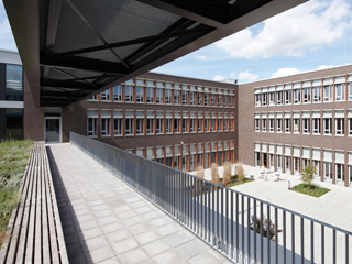 Der Neubau der Gesamtschule Rodenkirchen ist eine komplexe meandrierende Großform, welche die unterschiedlichsten Funktionsbereiche innerhalb dieser Gebäudestruktur vereint. Die Typologie des Meanders ermöglicht bei gleichzeitig kurzen Wegen eine Reihe unterschiedlicher spannender Raumfolgen. Neben eigentlichen Unterrichtsräumen beherbergt das Gebäudekomplex auch eine Pausenhalle, das Pädagogische Zentrum, die Mensa, eine Schulbibliothek, eine Sporthalle sowie eine große Freitreppe im Hof.